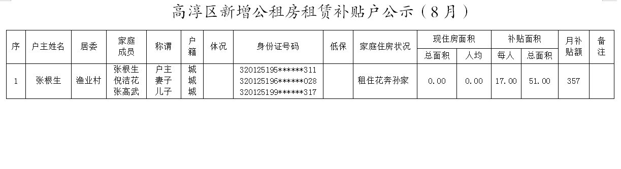 | 信息名稱: | 高淳區新增公租房租賃補貼戶公示(8月) |