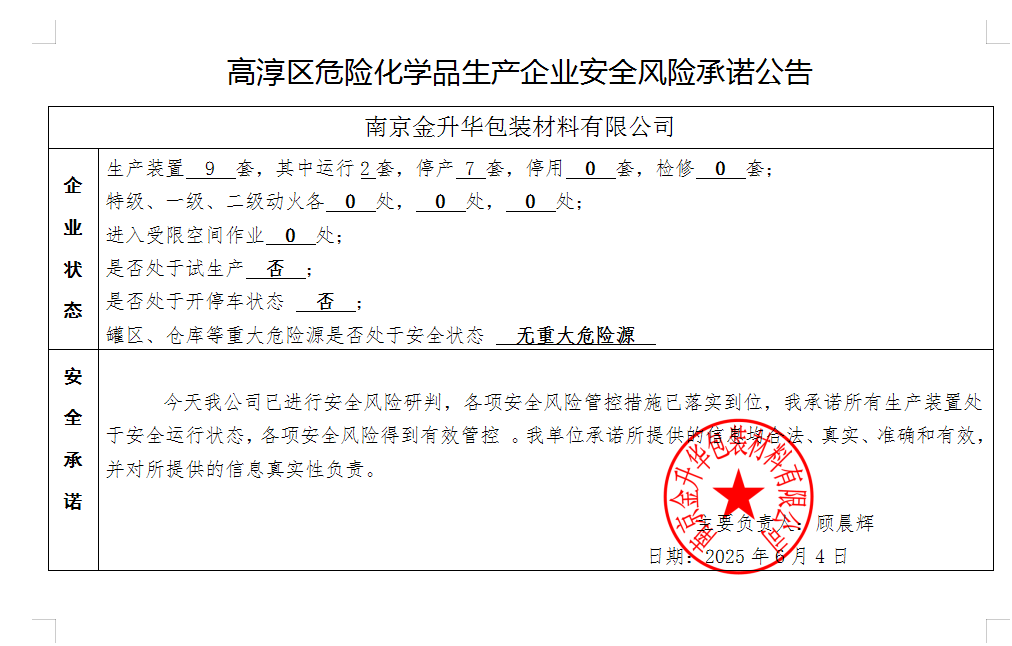 | 信息名稱: | 高淳區危險化學品生產企業安全風險承諾公告 |