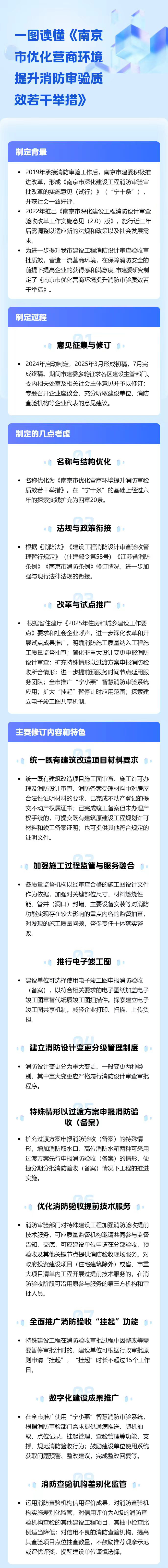| 信息名稱: | 一圖讀懂《南京市優(yōu)化營商環(huán)境提升消防審驗質效若干舉措》 | ||